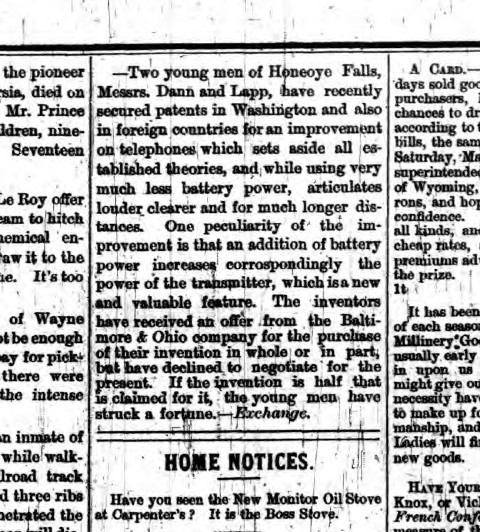 Dalla stampa di quell’anno emerge che il ritrovato di Dann (per lo sfruttamento commerciale del quale costituì un’apposita società) avrebbe avuto un impatto notevole nel campo della telefonia; e che avrebbe incontrato il sostegno economico di diversi investitori della zona. La conseguenza prevista dai commentatori dell’epoca era che questo avrebbe scatenato la dura reazione di Bell, che non avrebbe tardato a scagliare contro Dann e Lapp la sua potente squadra di legali, già impegnata a battagliare contro chiunque gli si frapponesse di traverso nello sviluppo del suo crescente impero.